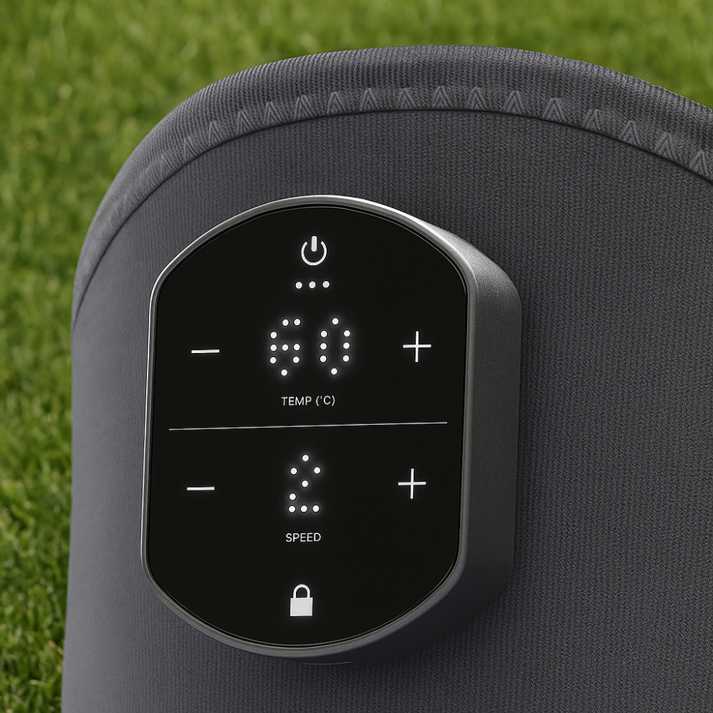 Digitalni kontrolni modul omogućuje ti da s lakoćom upravljaš toplinom i intenzitetom masaže. Sve funkcije su pregledne i dostupne jednim dodirom. Više nema nagađanja – znaš točno što tvoje koljeno treba.